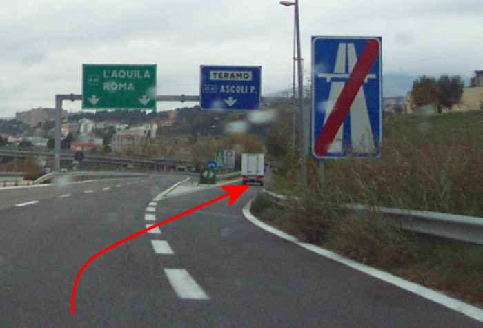 Uscire alla prima uscita, quella per Teramo/Ascoli e andare in direzione di Teramo centro